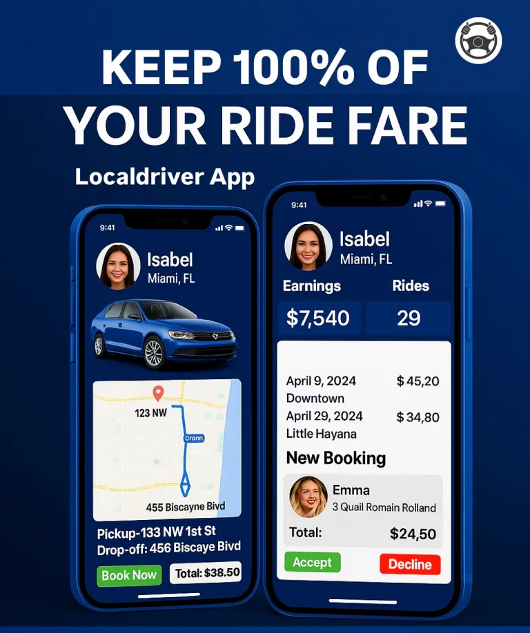 LocalDriver is a complete ride-booking system for independent transportation professionals. Get your own booking page, accept direct bookings, send payment requests, and manage your business โ without commissions or middlemen.